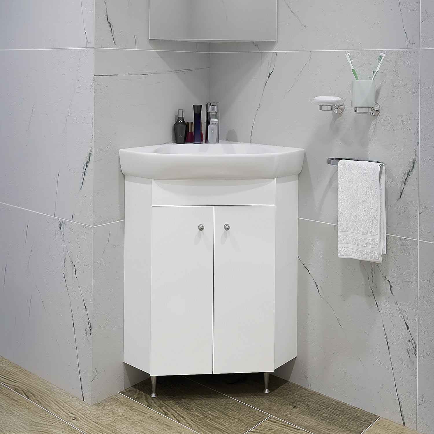 Практичен водоустойчив шкаф, който идеално приляга в ъгъла на вашата баня и спестява ценно място.