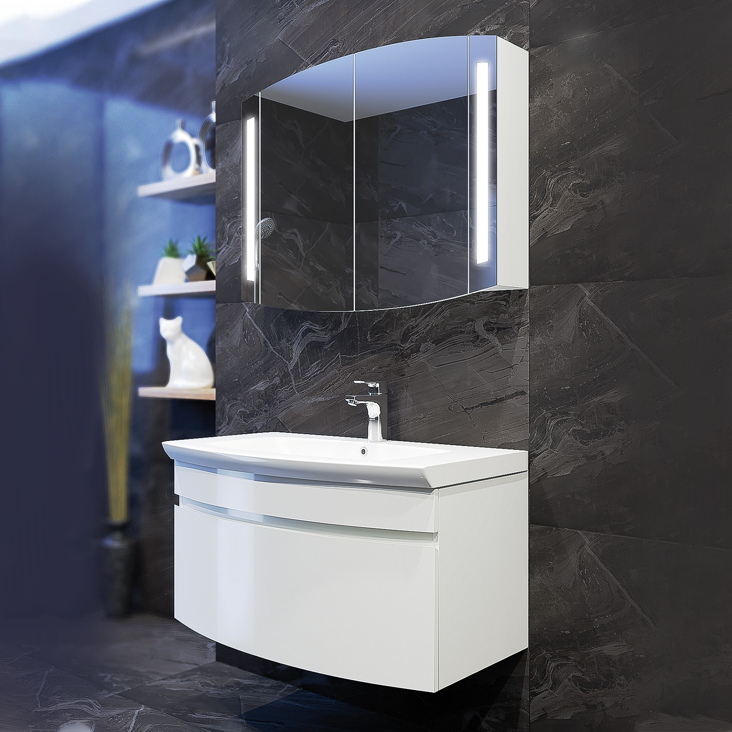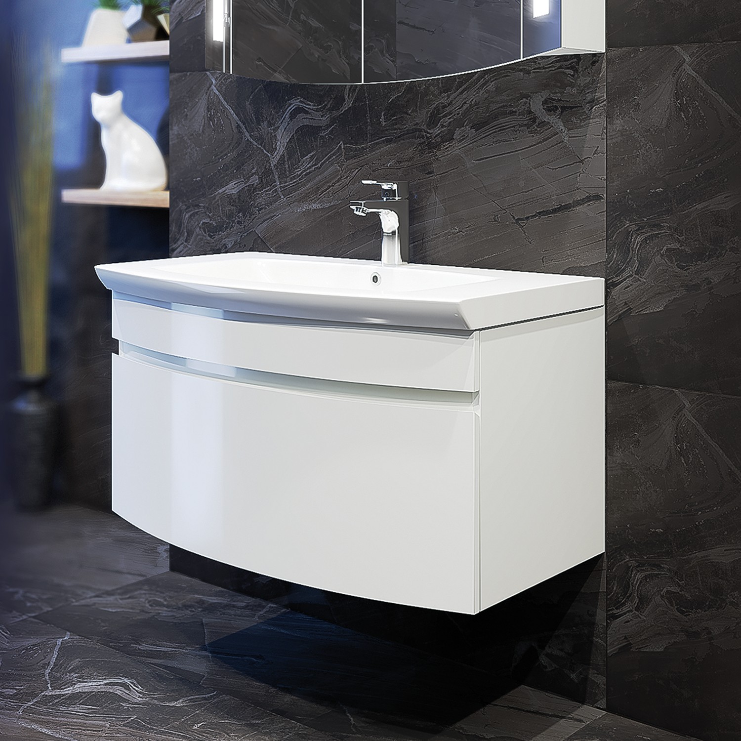 Съвършено водоустойчив шкаф за вашата баня. С удобно и дълбоко чекмедже за съхранение.