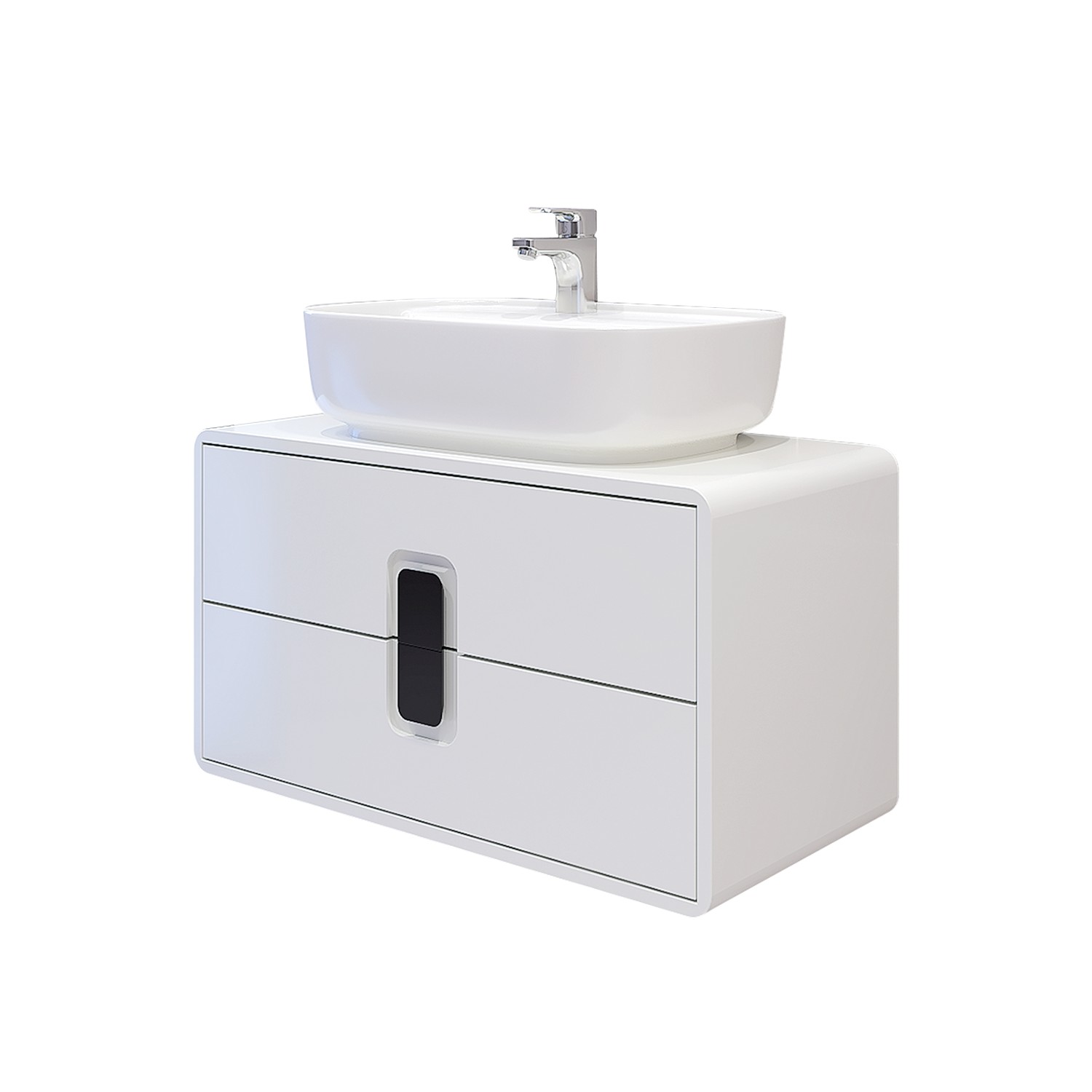 Съвършено водоустойчив шкаф за вашата баня. С две практични чекмеджета с плавно затваряне и стилна дръжка.