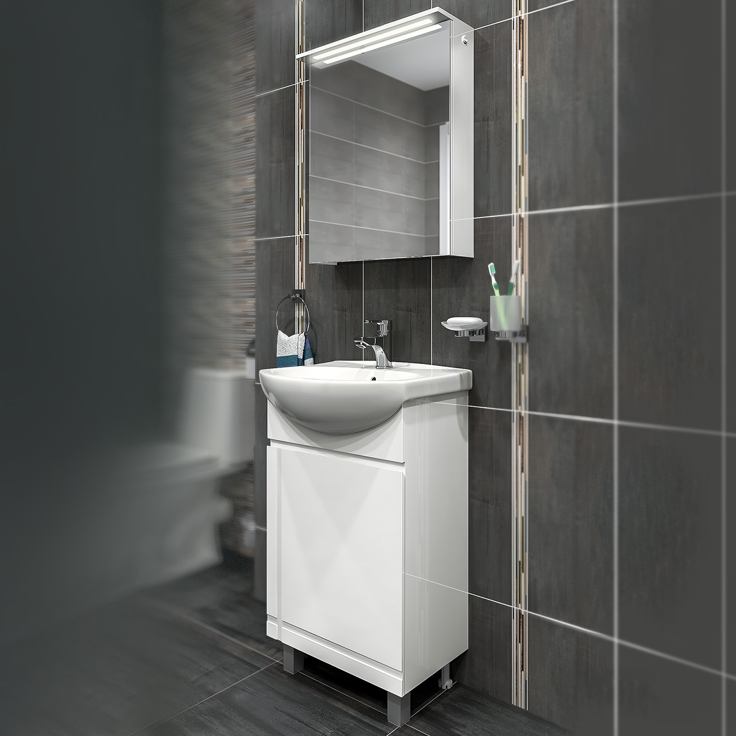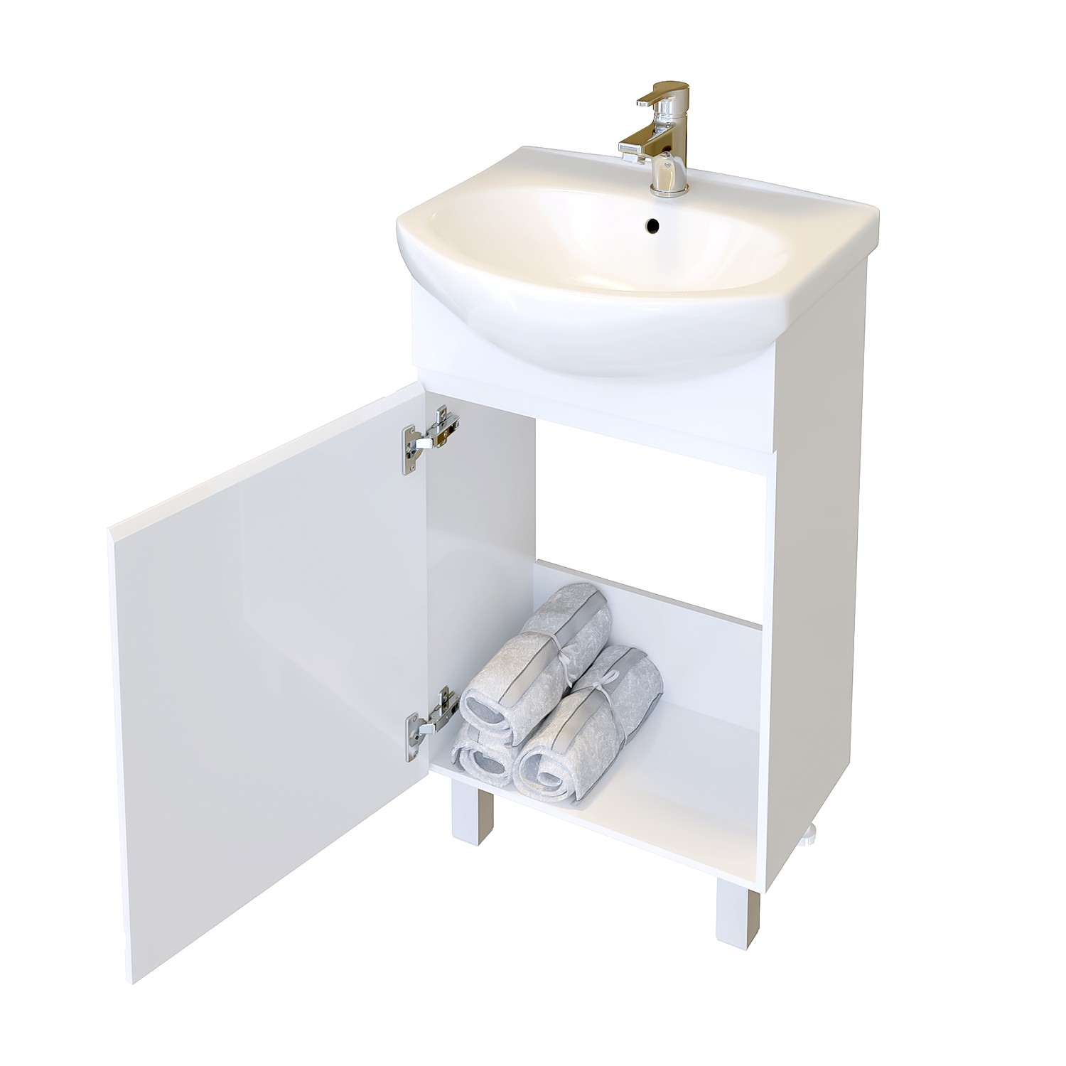 Компактен водоустойчив шкаф с една врата и плавно затваряне. Подходящ за малки помещения.