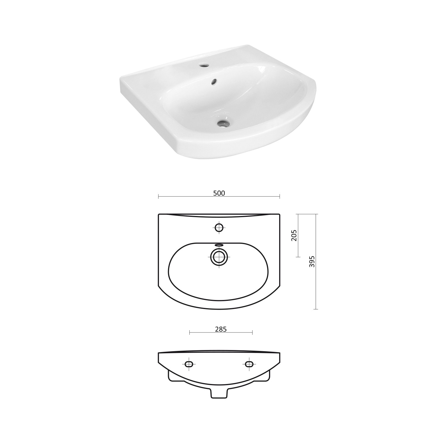 Dimensiuni in mm: Latime – 500 / Inaltime – 850 / Adâncime – 395