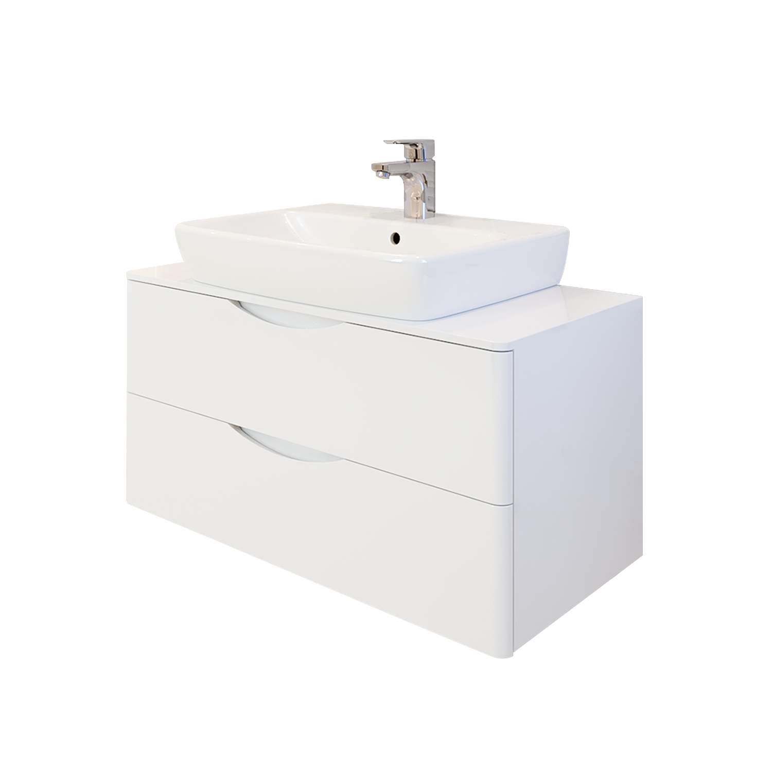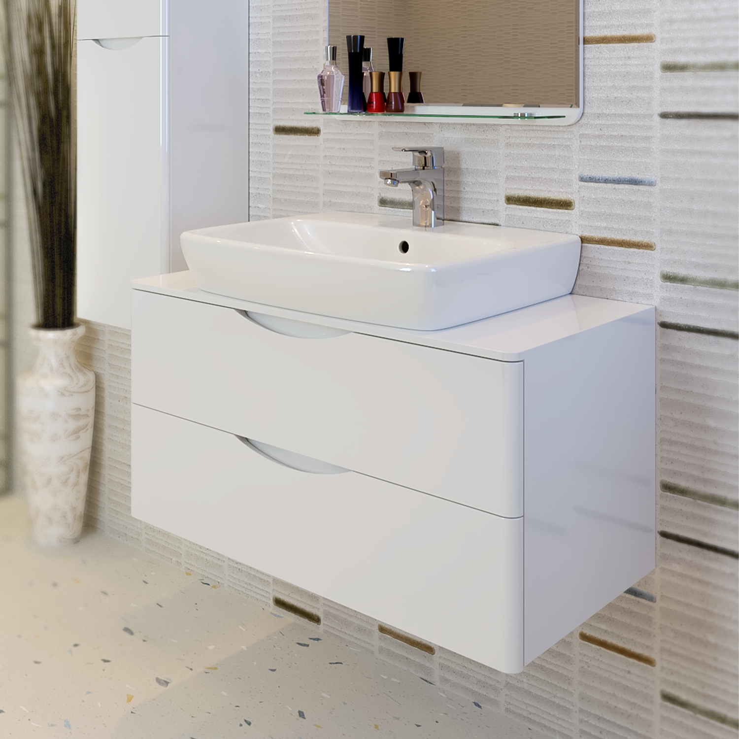Съвършено водоустойчив шкаф за вашата баня. С две удобни чекмеджета с плавно затваряне и елегантна мивка.