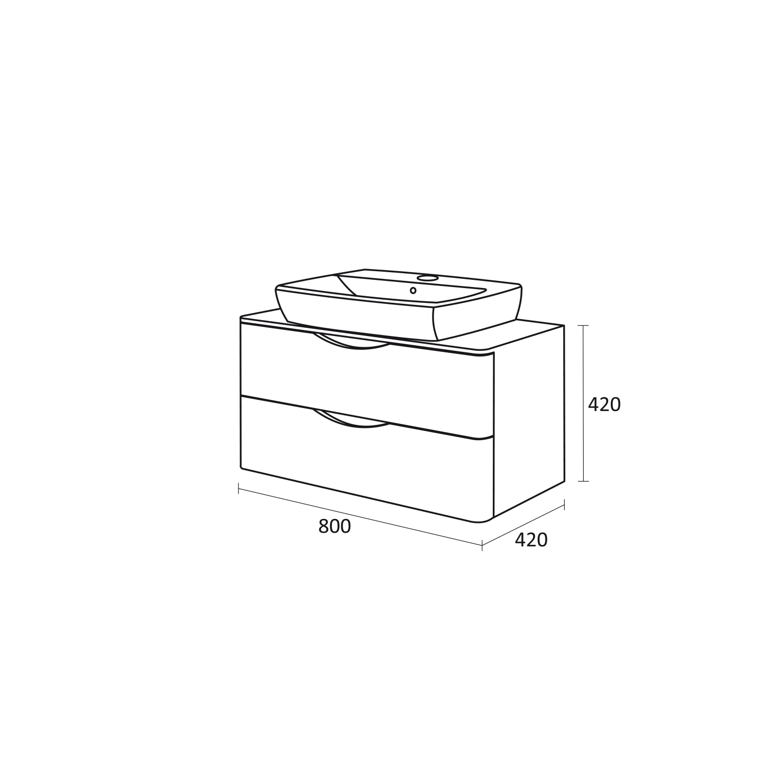 Dimensiuni în mm: Lățime – 800 / Înălțime – 420 / Adâncime – 420