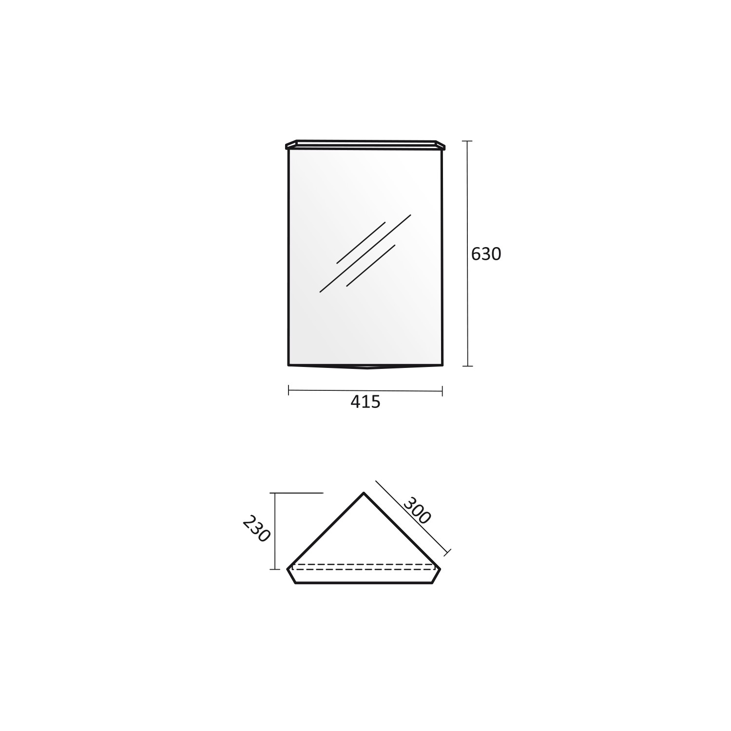 Dimensiuni în mm: Lățime – 415 / Înălțime – 630 / Adâncime – 230