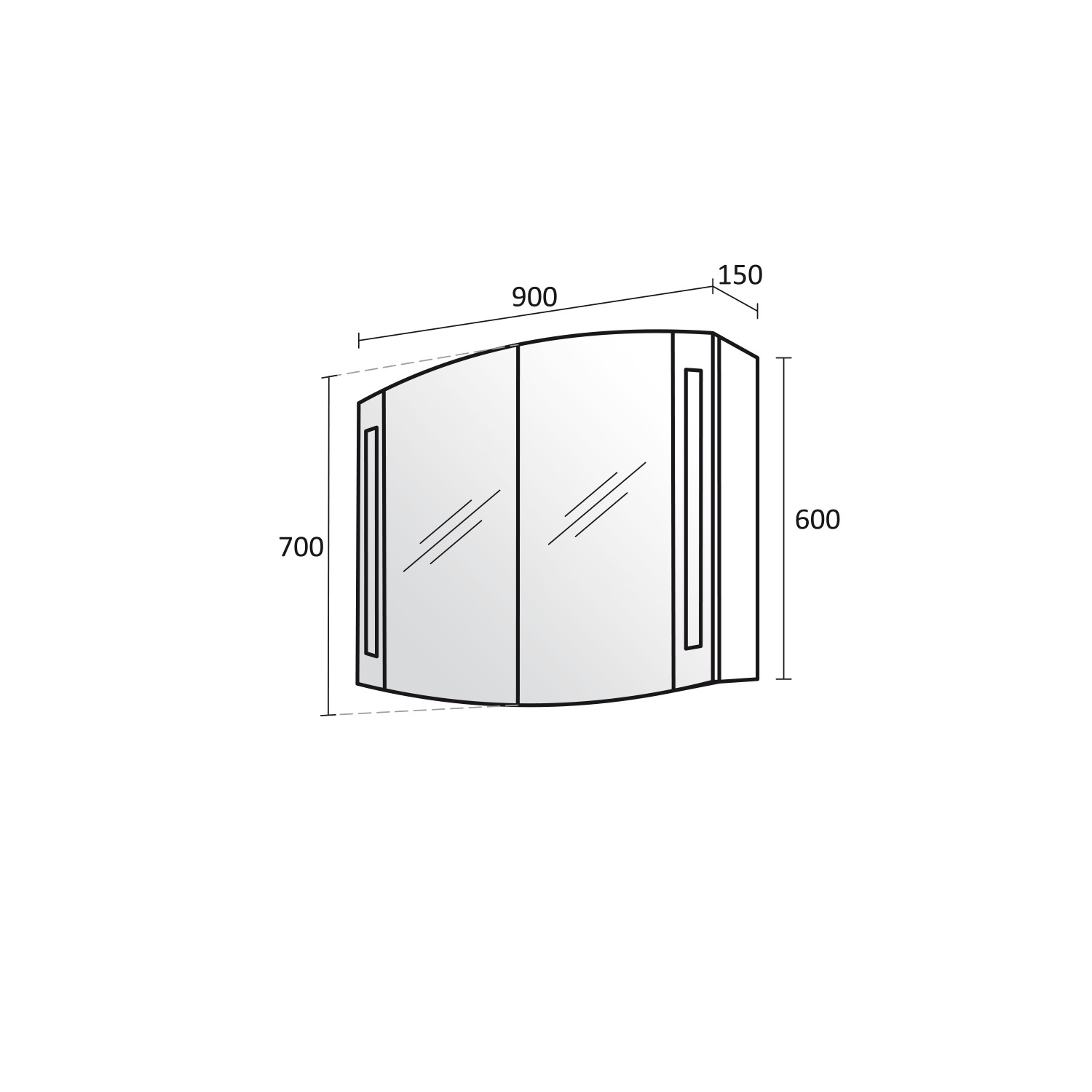 Dimensiuni în mm: Lățime – 900 / Înălțime – 600 / Adâncime – 150