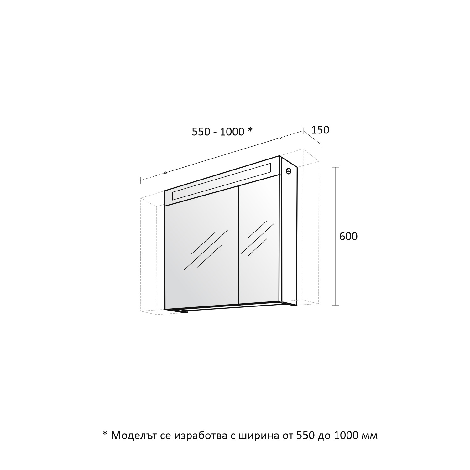 Dimensiuni în mm: Lățime – 650 / Înălțime – 600 / Adâncime – 150