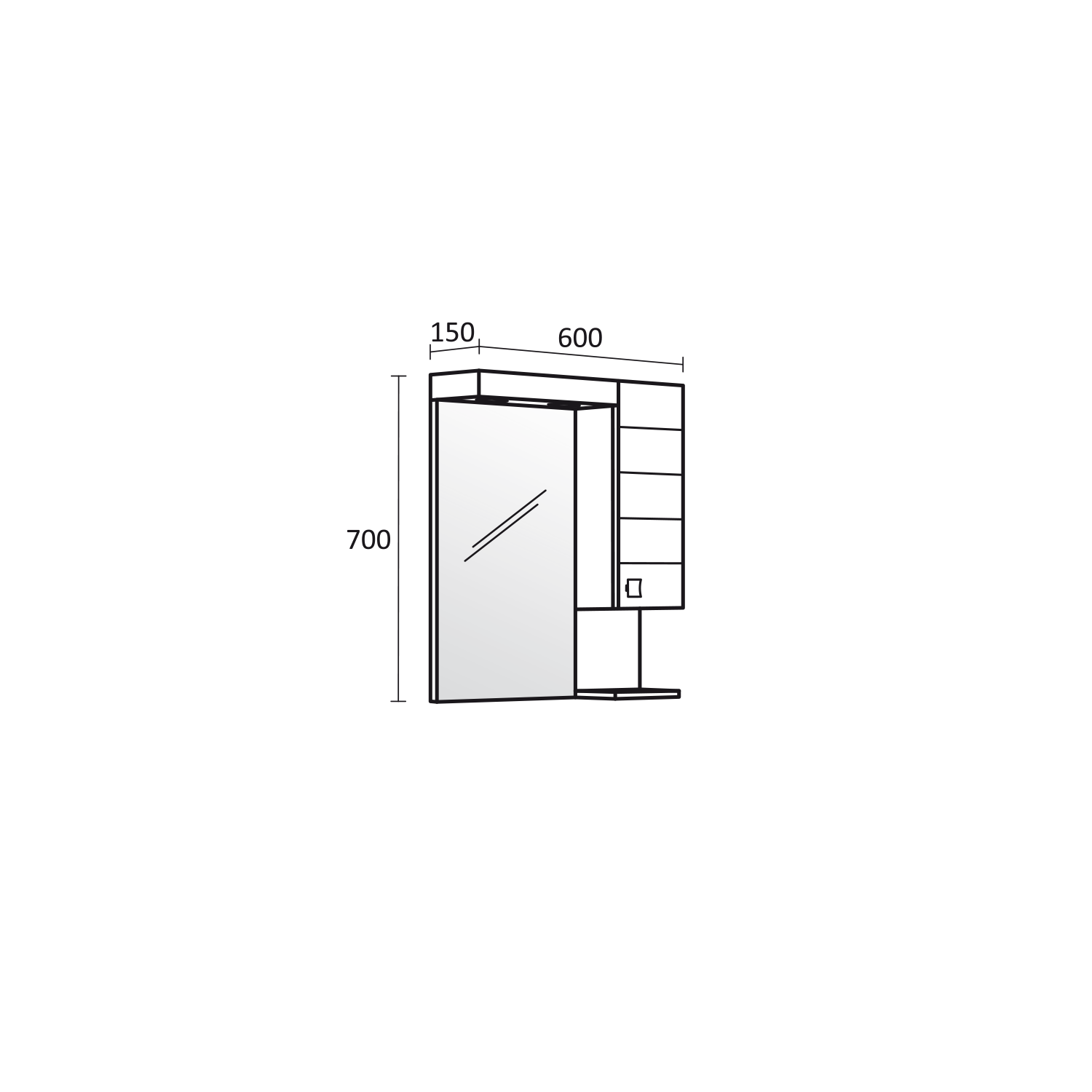 Dimensiuni în mm: Lățime – 600 / Înălțime – 700 / Adâncime – 150