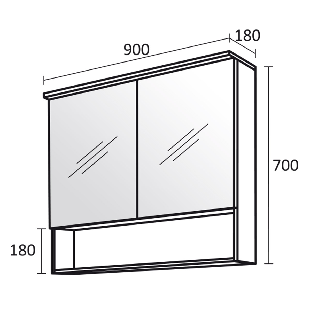 Dimensiuni în mm: Lățime – 900 / Înălțime – 700 / Adâncime – 180
