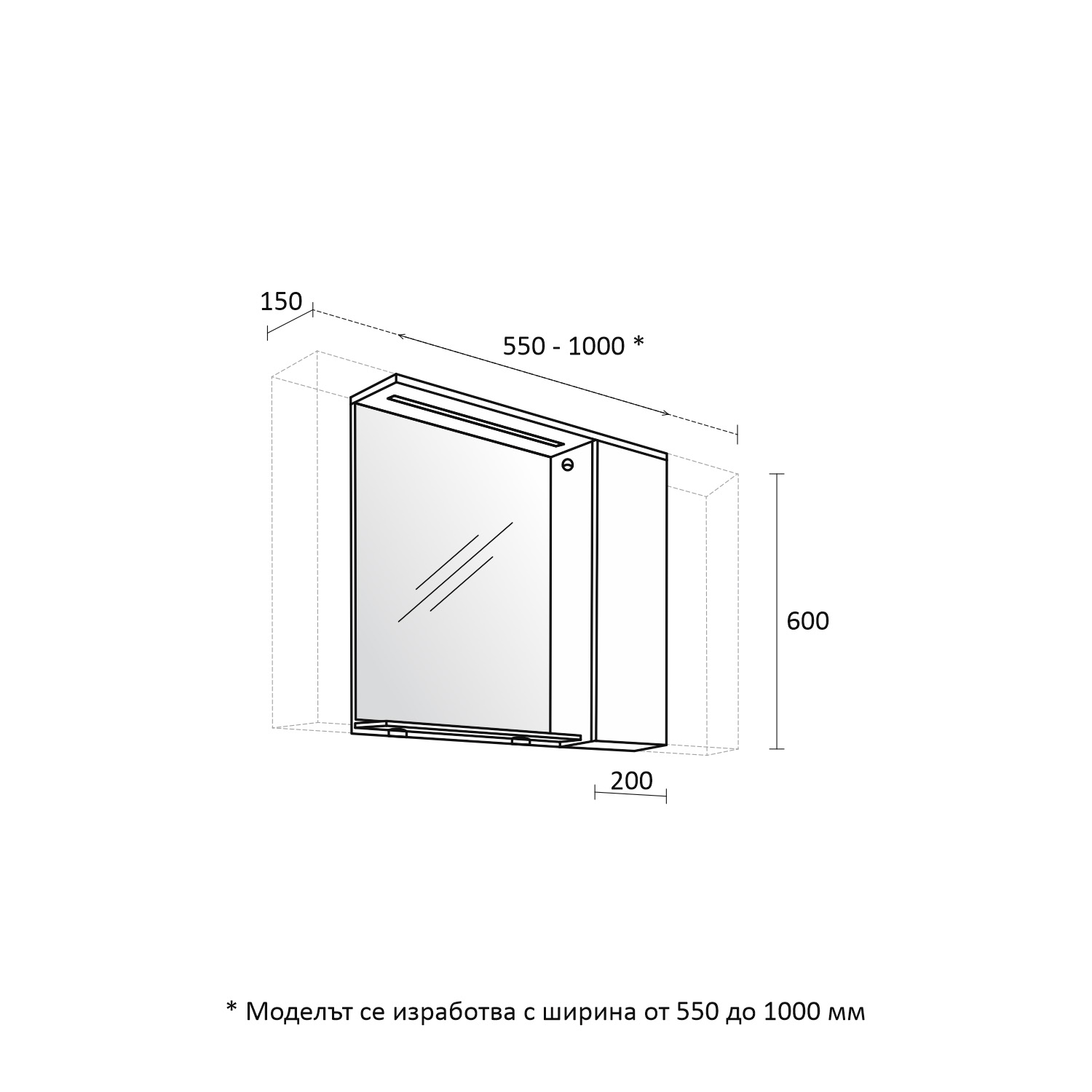 Dimensiuni în mm: Lățime – 650 / Înălțime – 600 / Adâncime – 150
