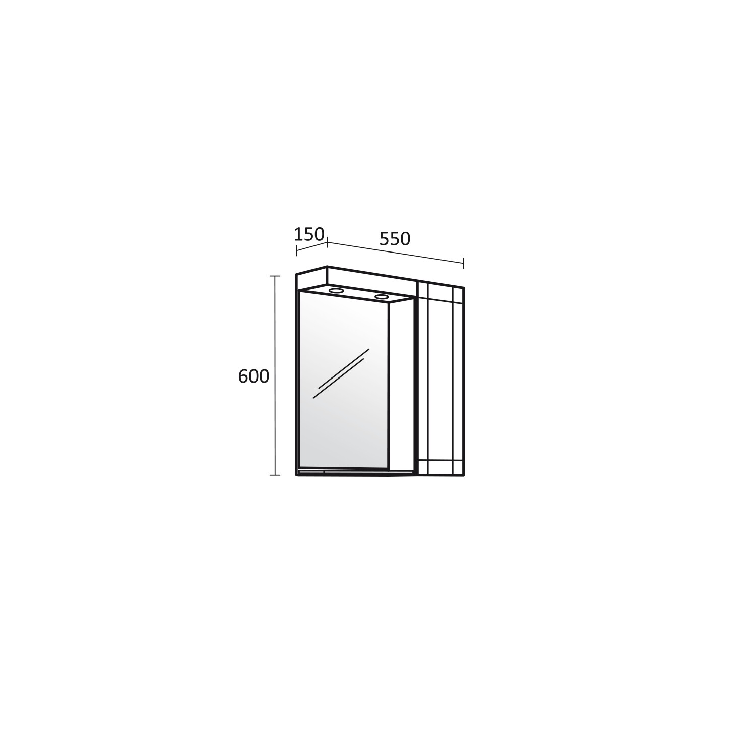 Dimensiuni în mm: Lățime – 550 / Înălțime – 600 / Adâncime – 150