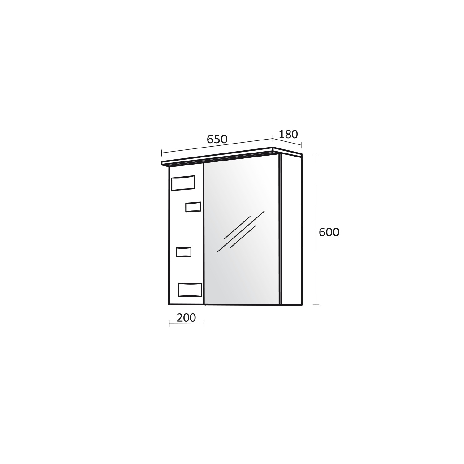 Dimensiuni în mm: Lățime – 650 / Înălțime – 600 / Adâncime – 180