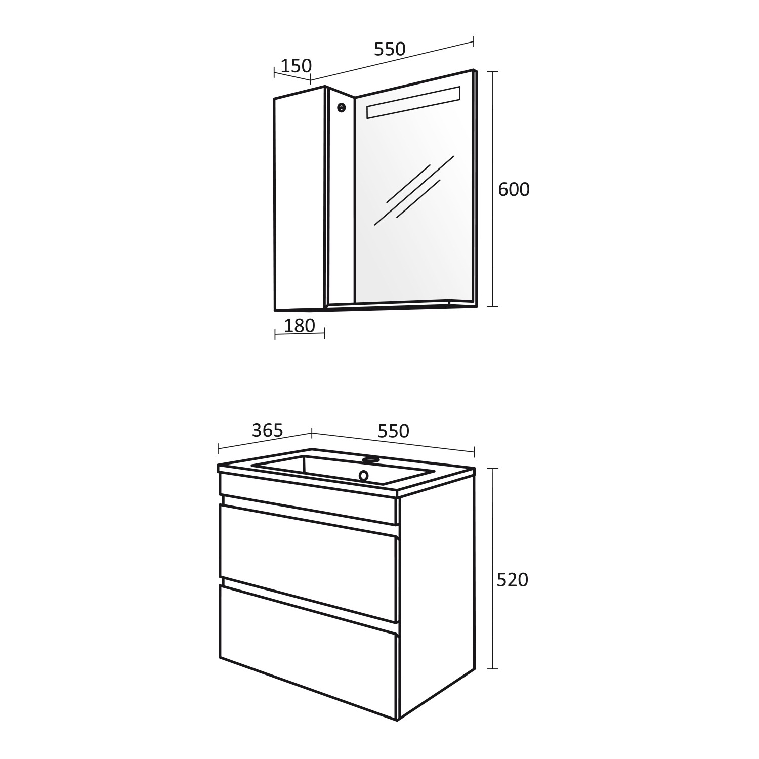 Dimensiuni în mm: Lățime – 550 / Înălțime – 600 / Adâncime – 150