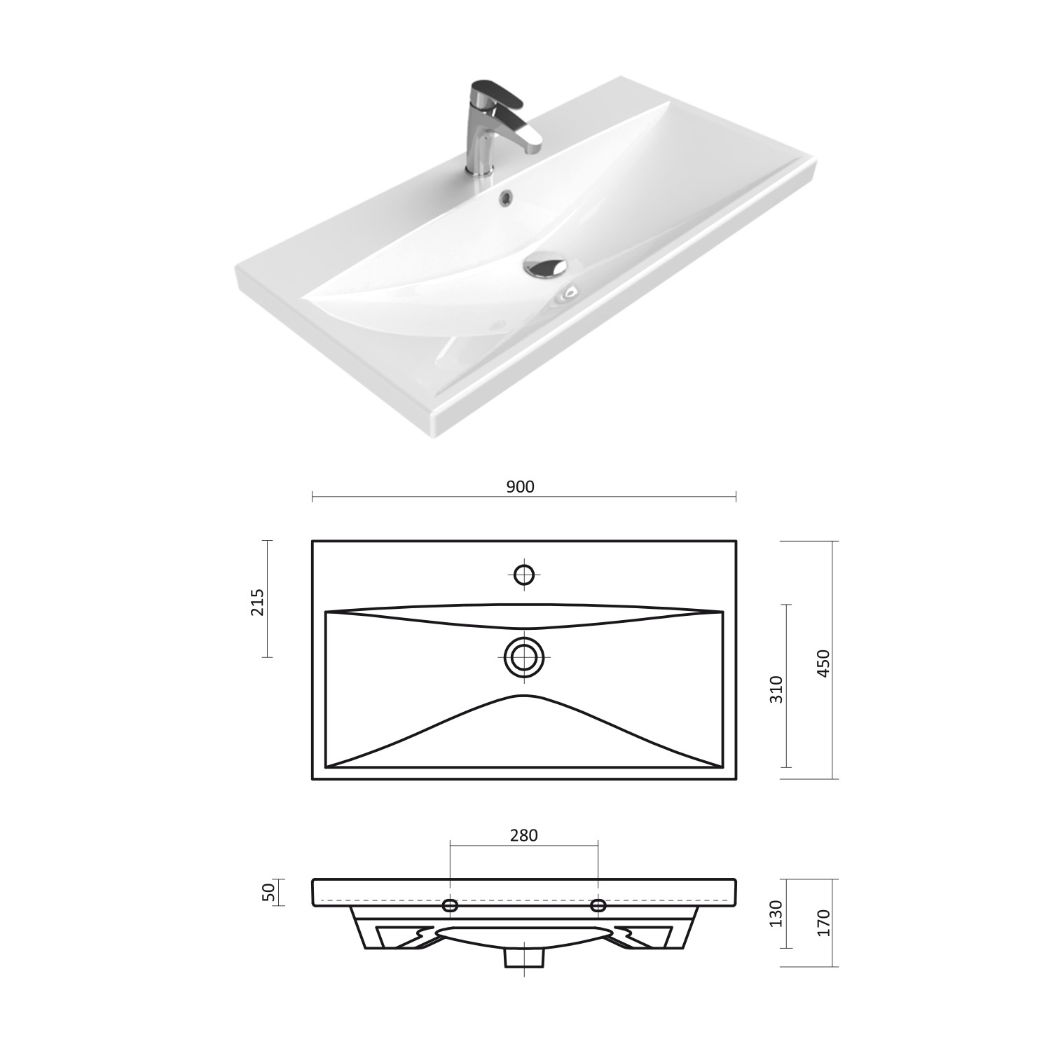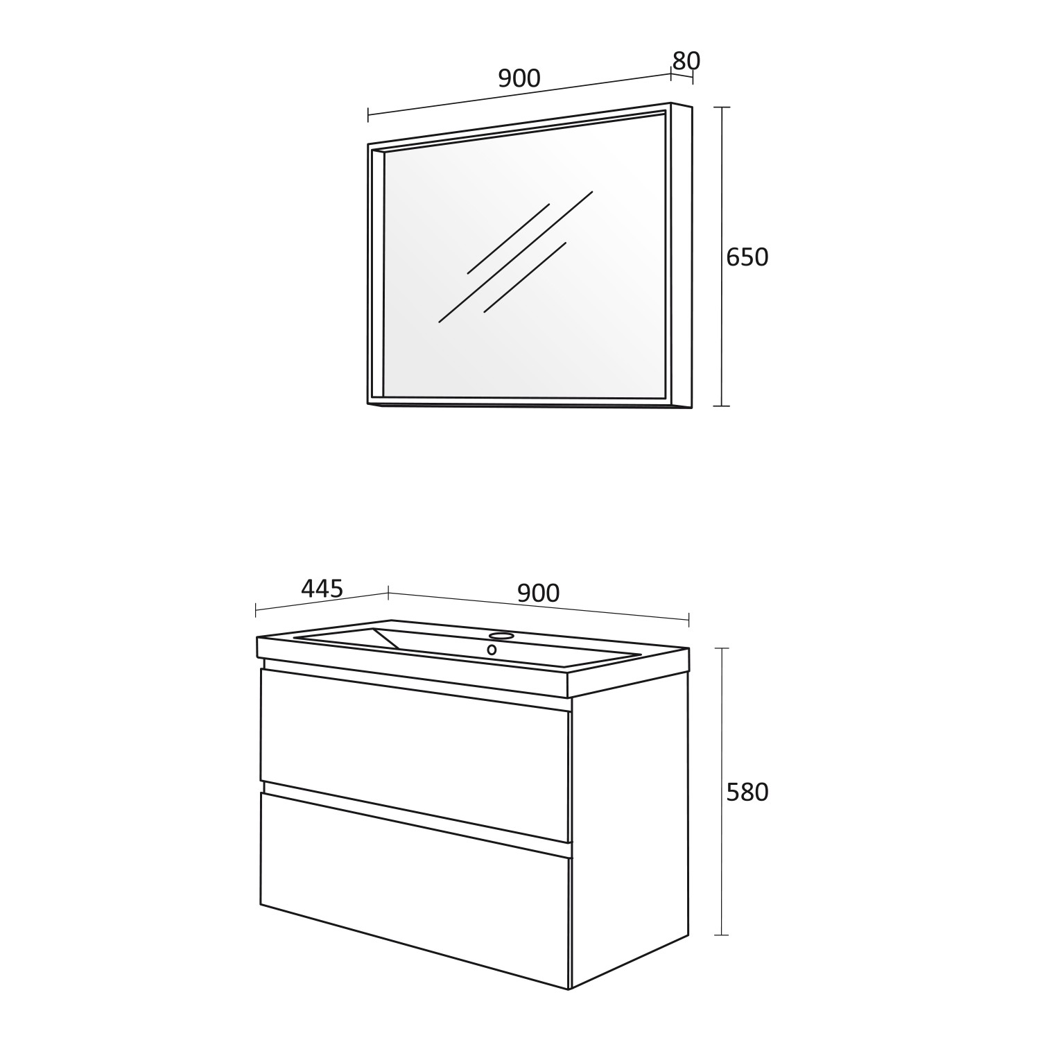Dimensiuni în mm: Lățime – 900 / Înălțime – 580 / Adâncime – 445