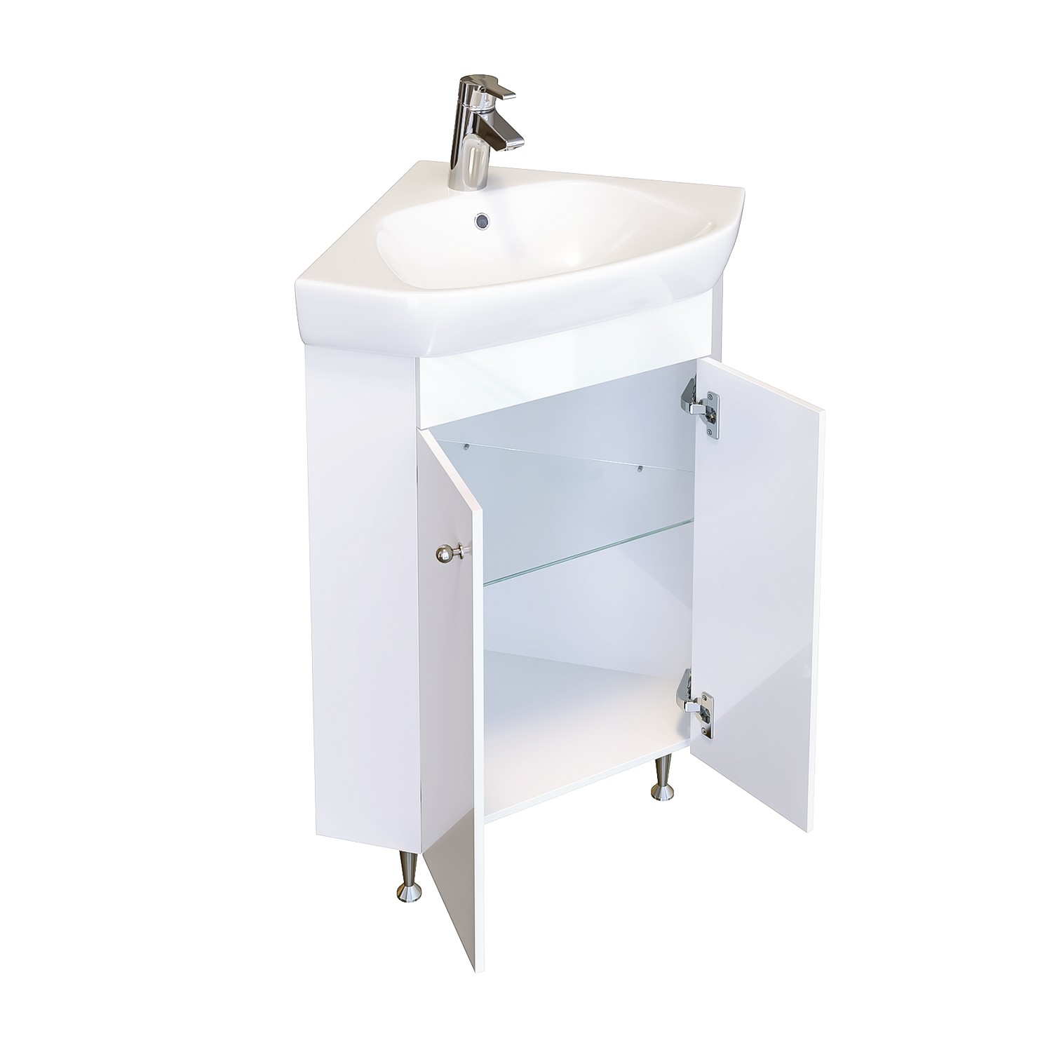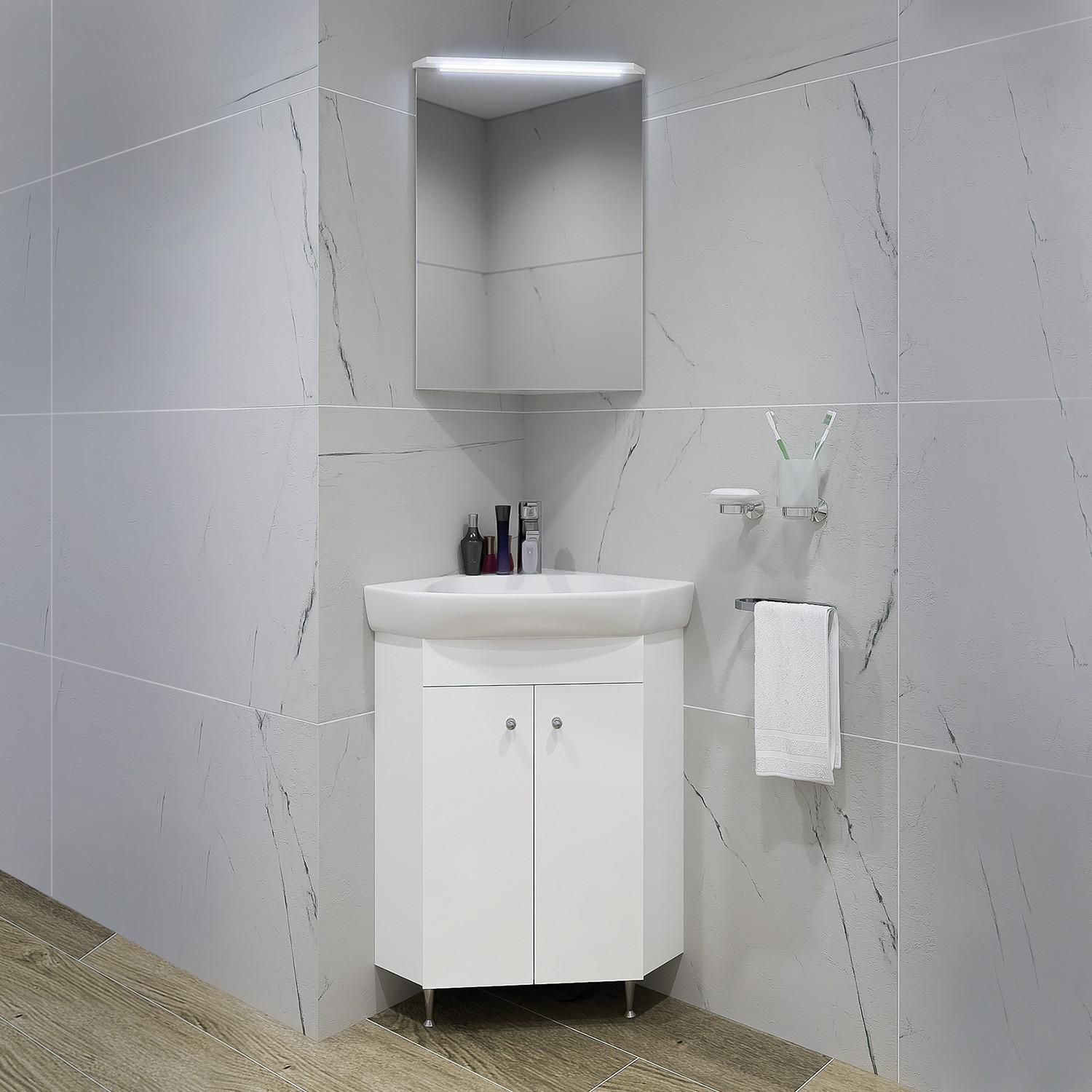 Практичен водоустойчив комплект шкафове, който идеално приляга в ъгъла на вашата баня и спестява ценно място.