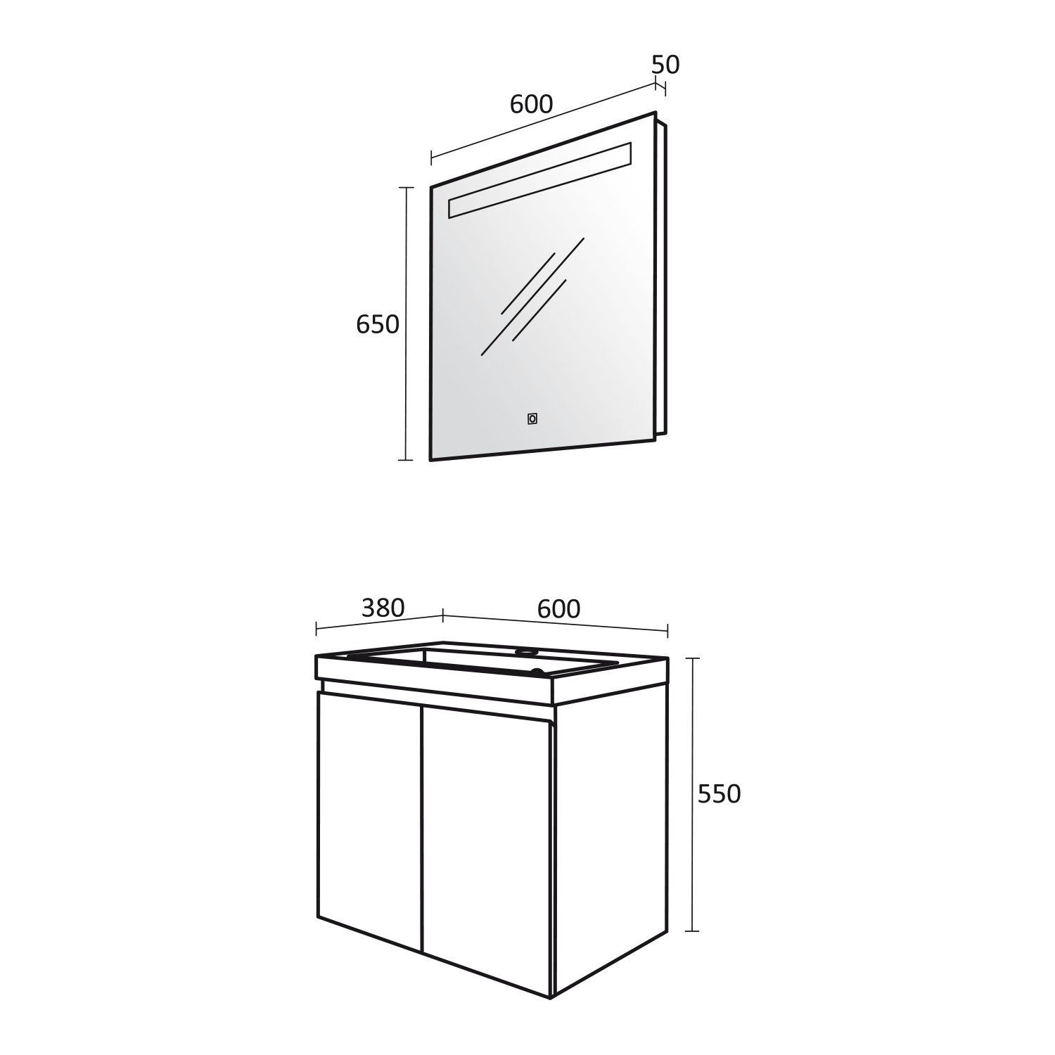 Dimensiuni în mm: Lățime – 600 / Înălțime – 550 / Adâncime – 380
