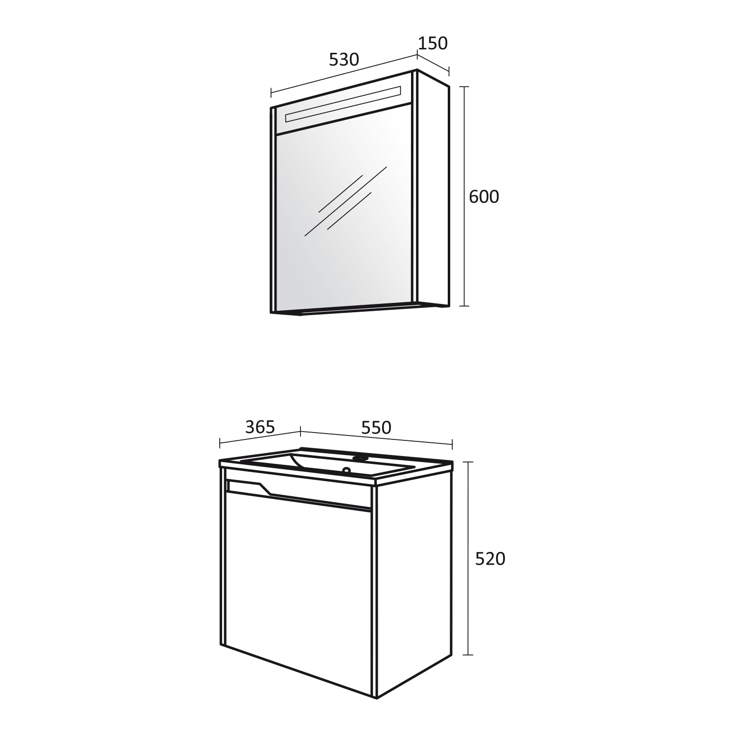 Dimensiuni în mm: Lățime – 530 / Înălțime – 600 / Adâncime – 150