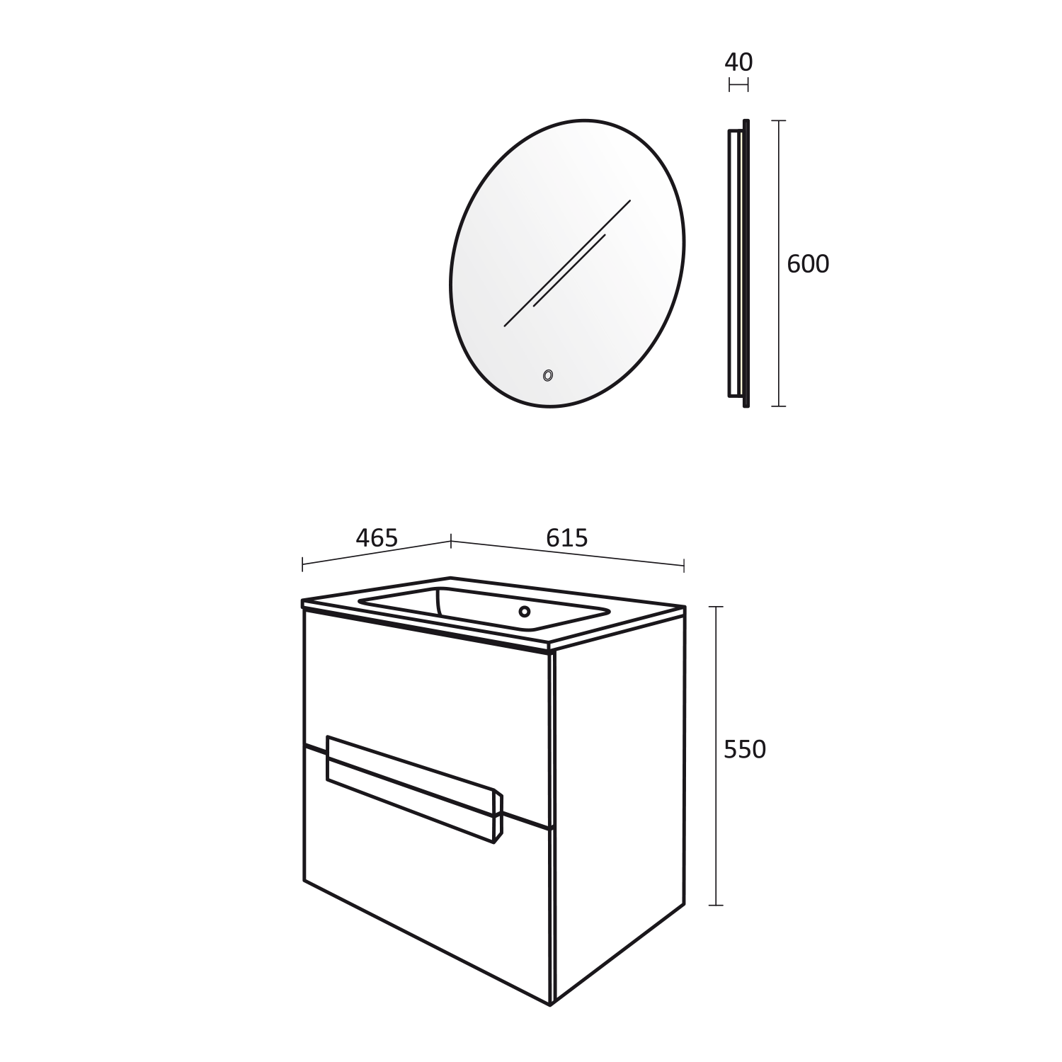 Dimensiuni in mm: Lăţime – 615 / Înălţime – 550 / Adâncime – 465