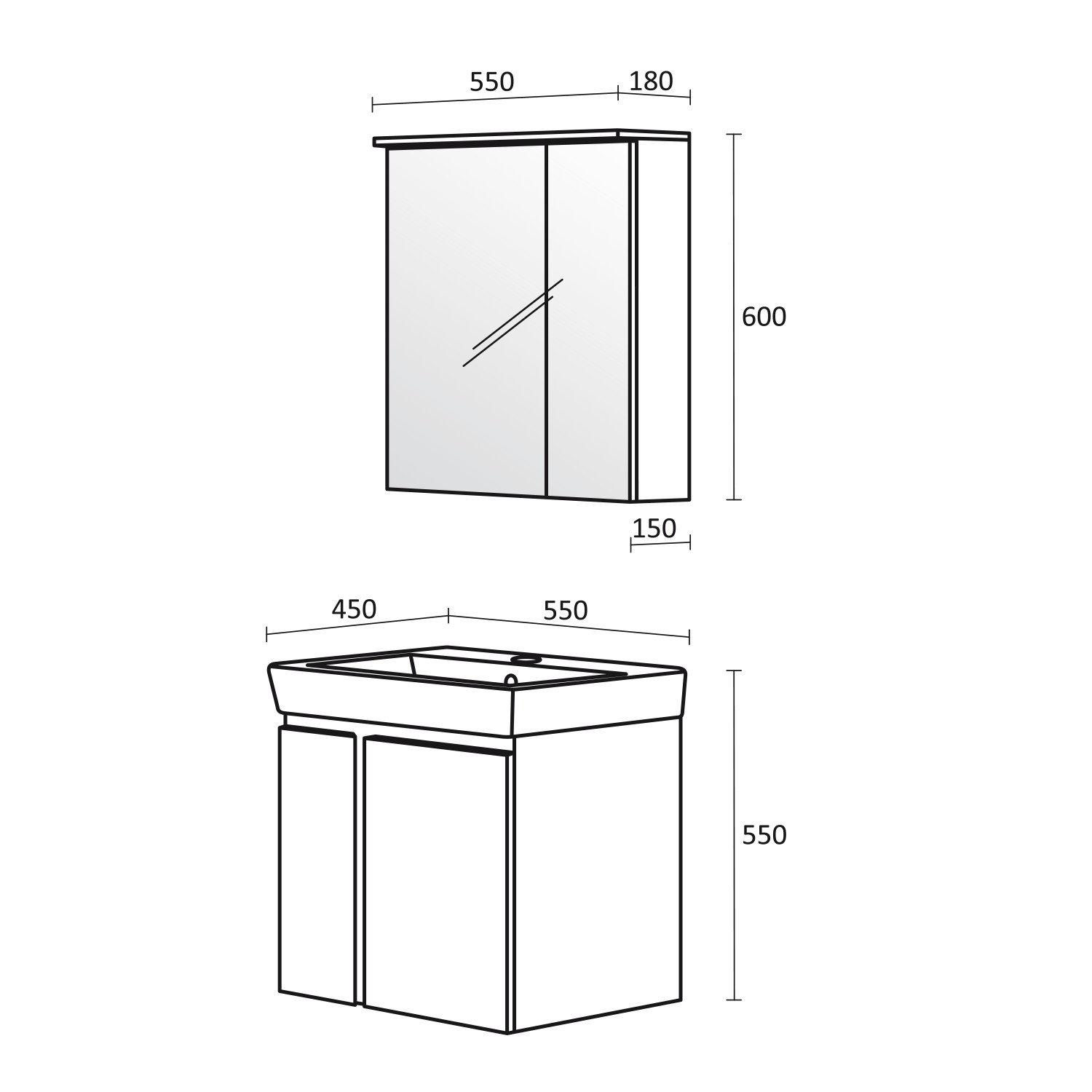 Dimensiuni în mm: Lățime – 550 / Înălțime – 600 / Adâncime – 180