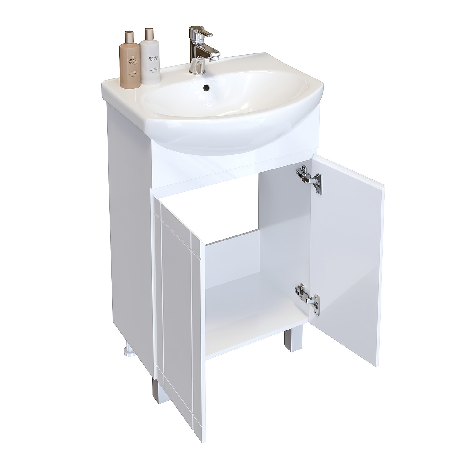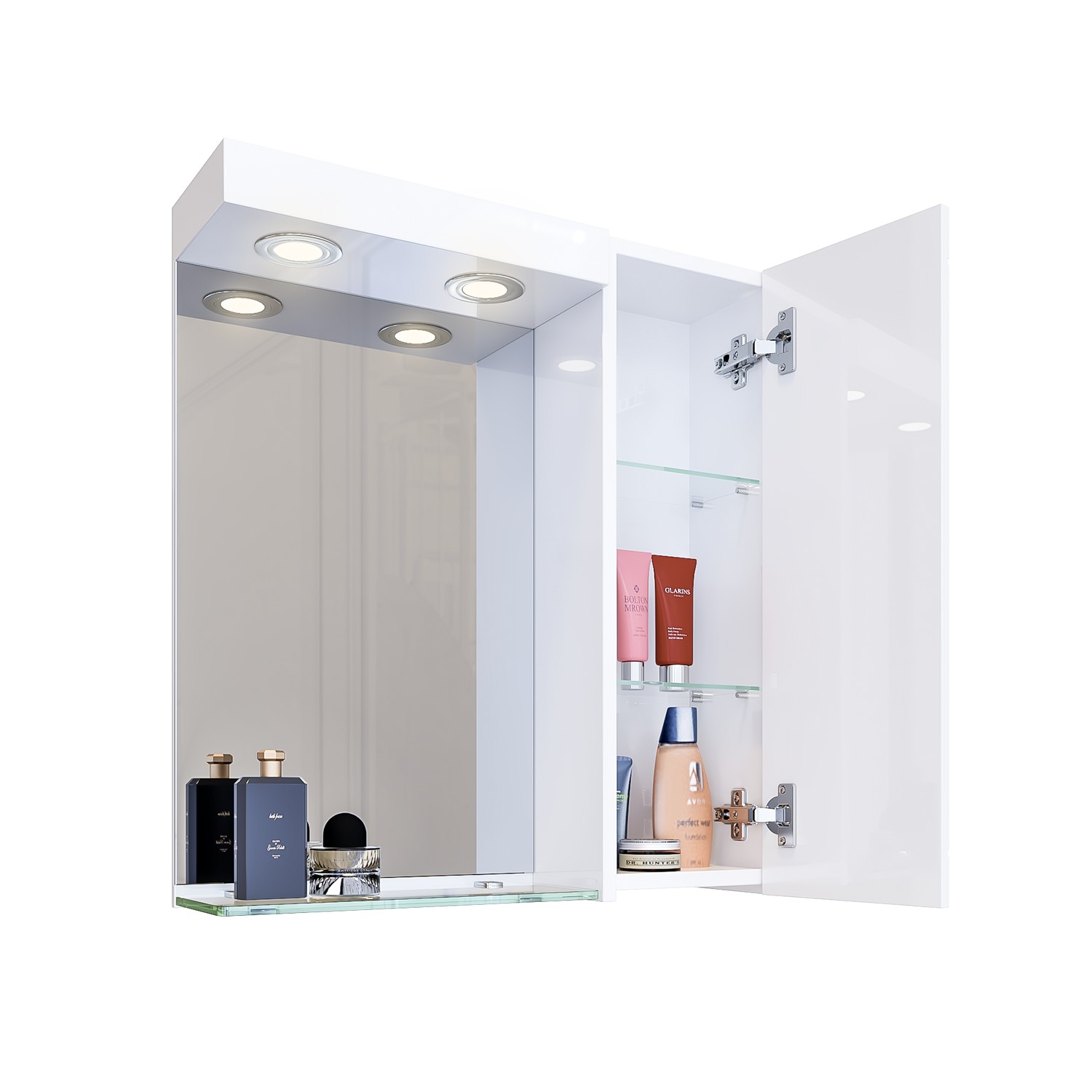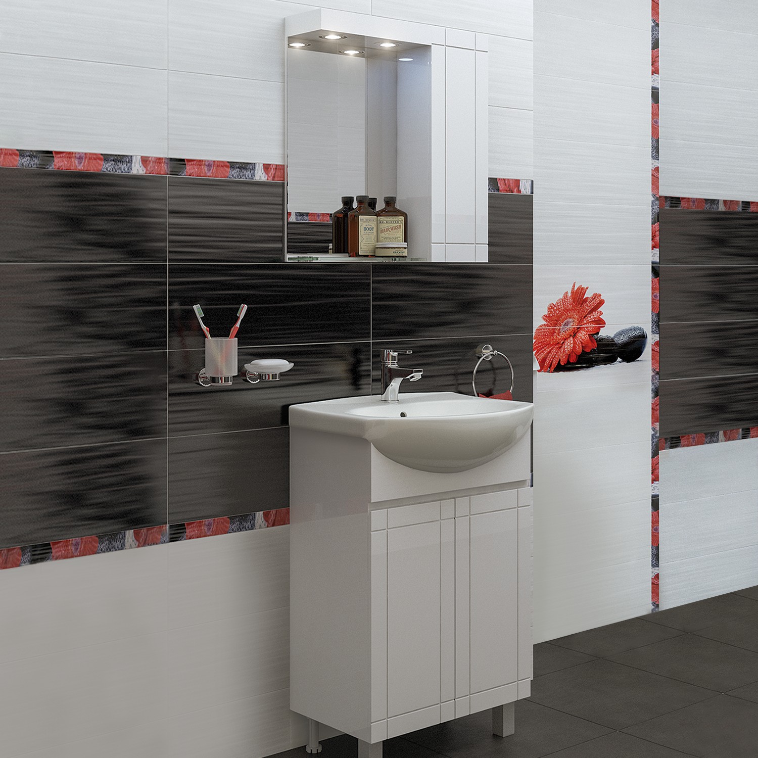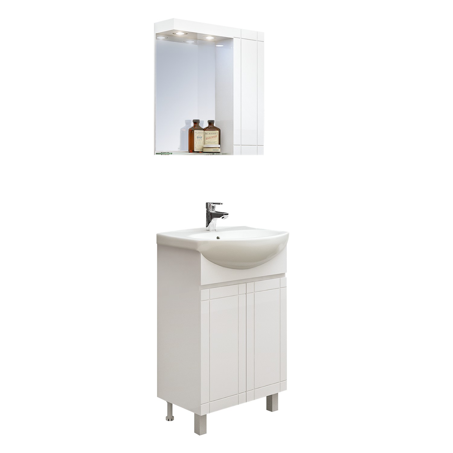 Водоустойчив шкаф за баня с две врати със стилни декоративни елементи и плавно затваряне.