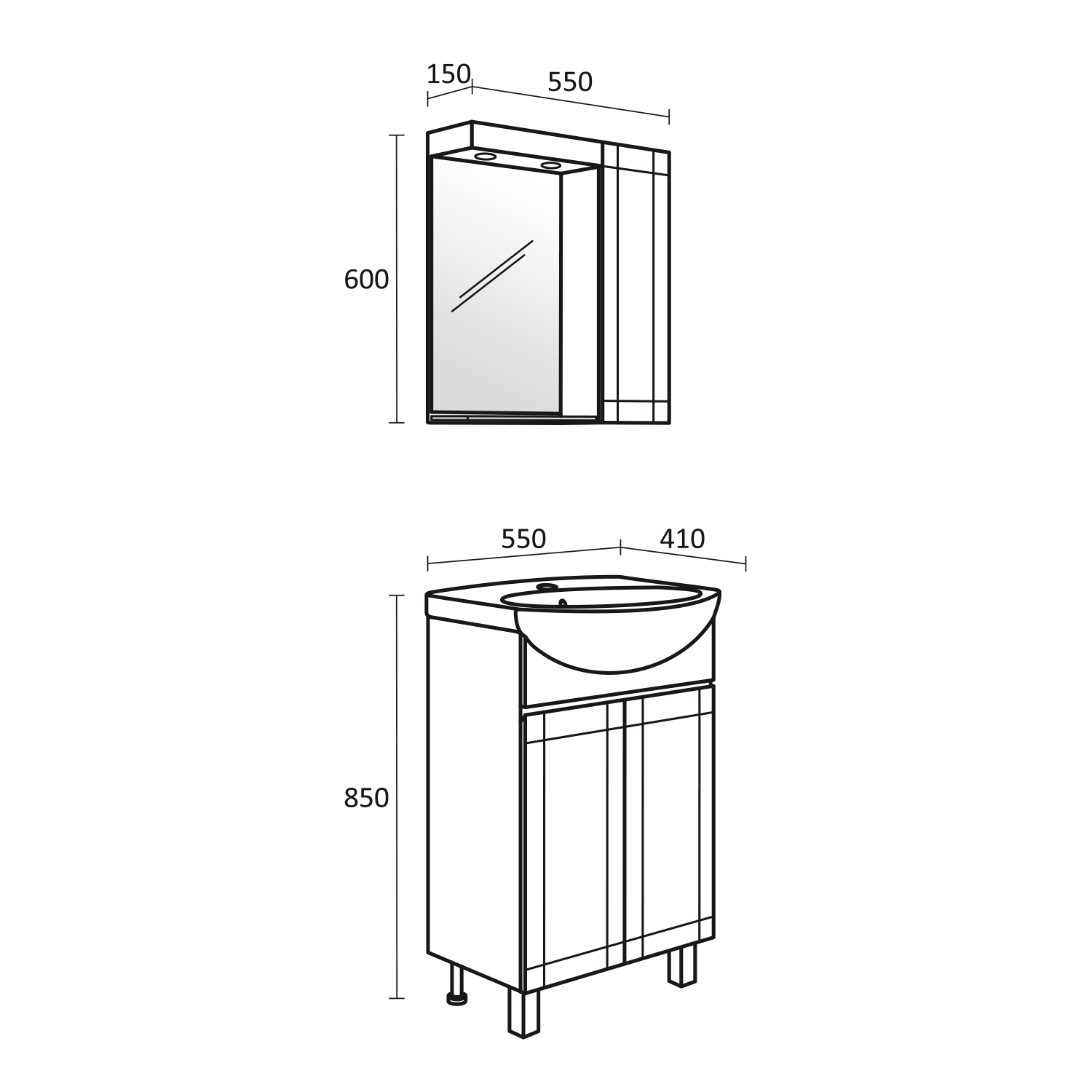 Dimensiuni în mm: Lățime – 550 / Înălțime – 600 / Adâncime – 150