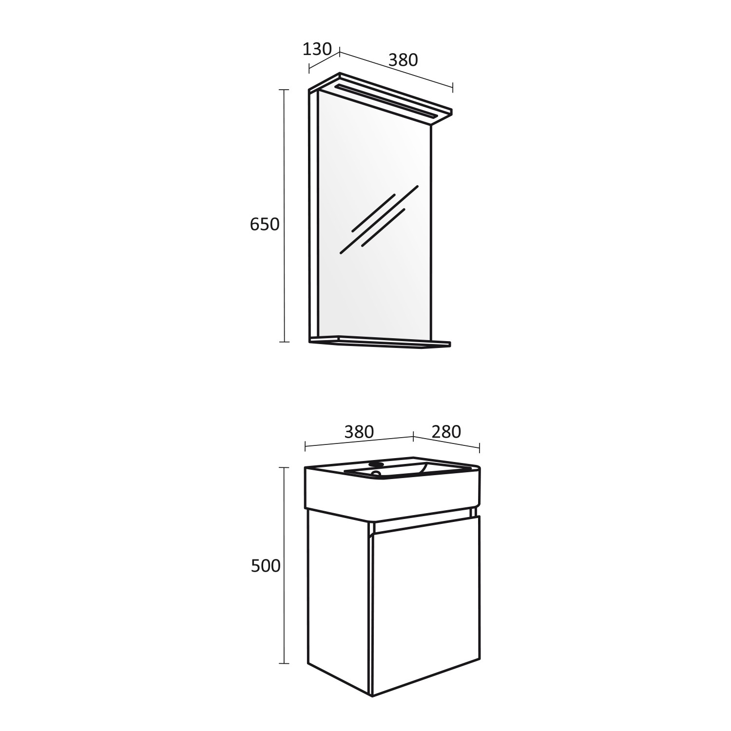 Dimensiuni în mm: Lățime – 380 / Înălțime – 500 / Adâncime – 280