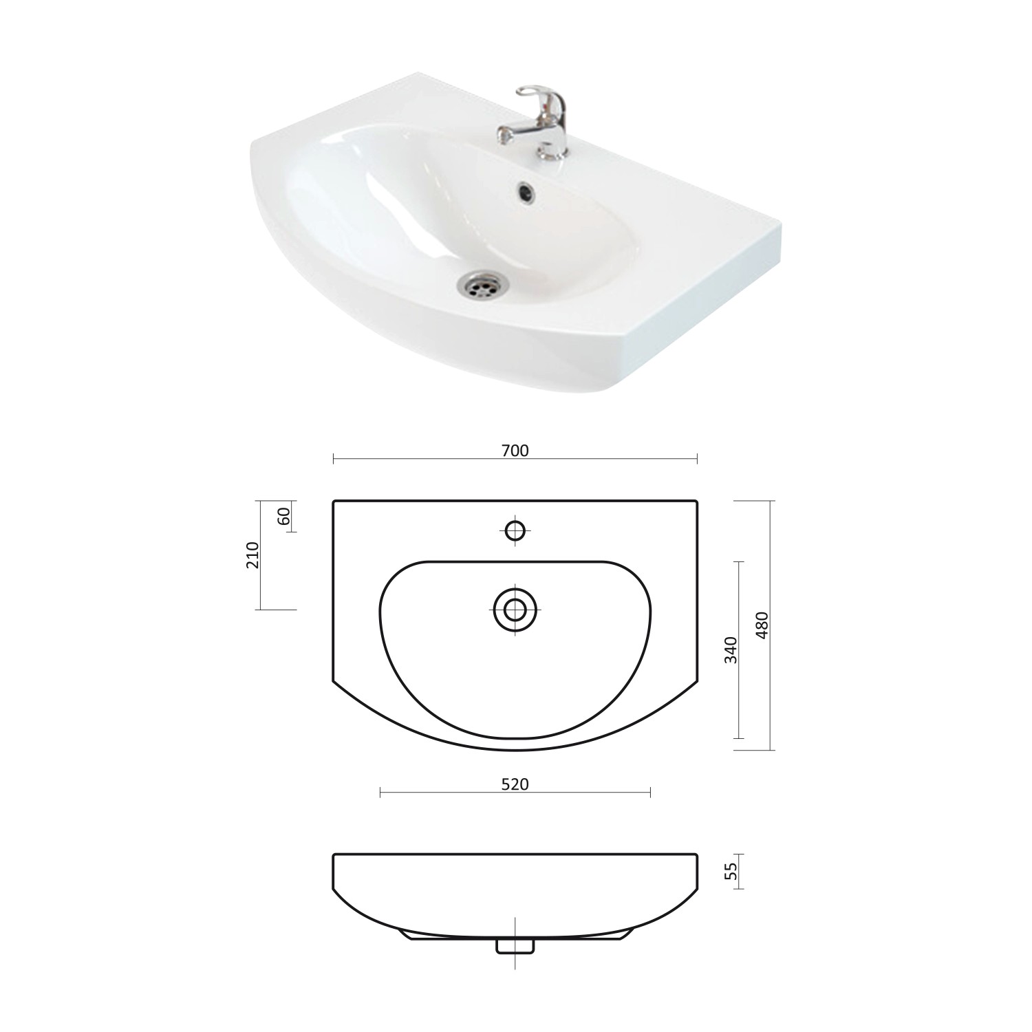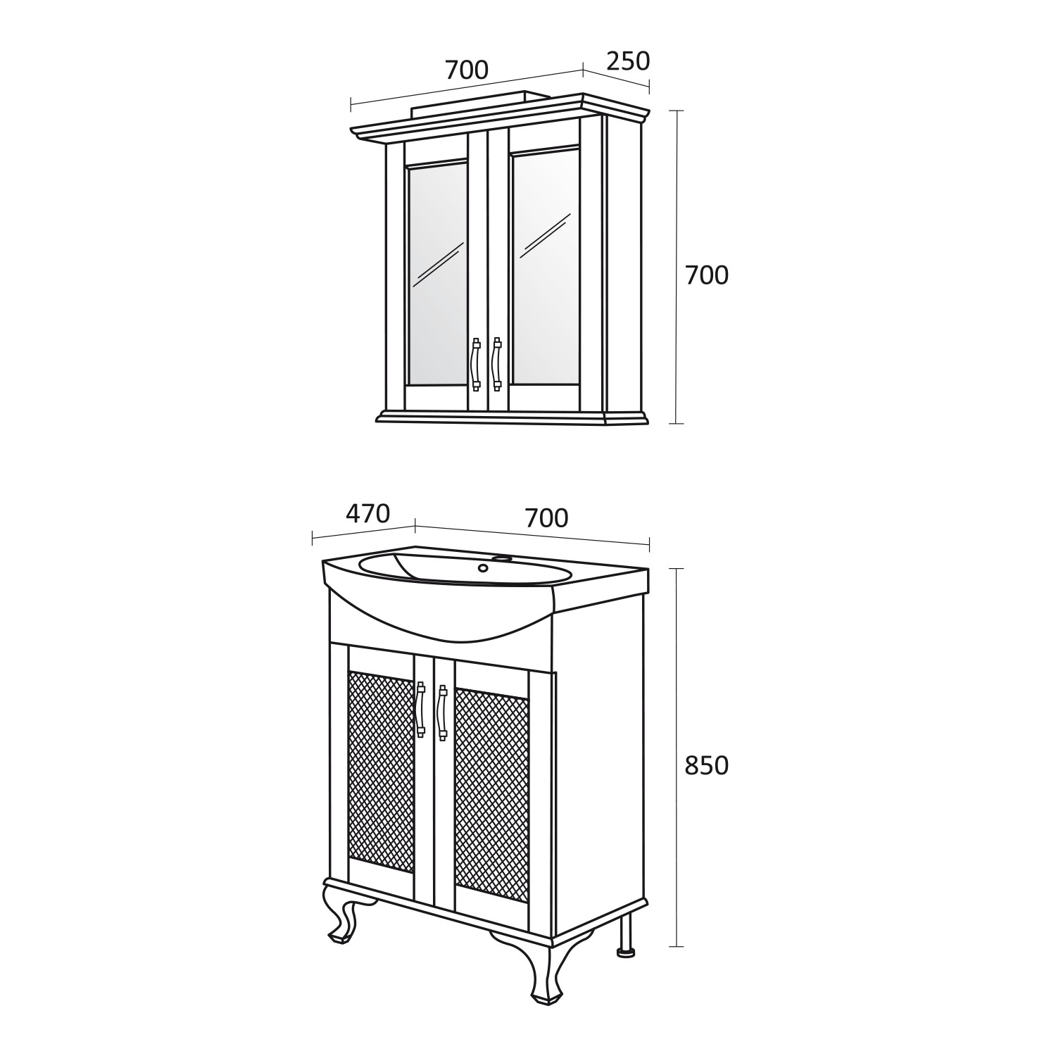 Dimensiuni în mm: Lățime – 700 / Înălțime – 700 / Adâncime – 250