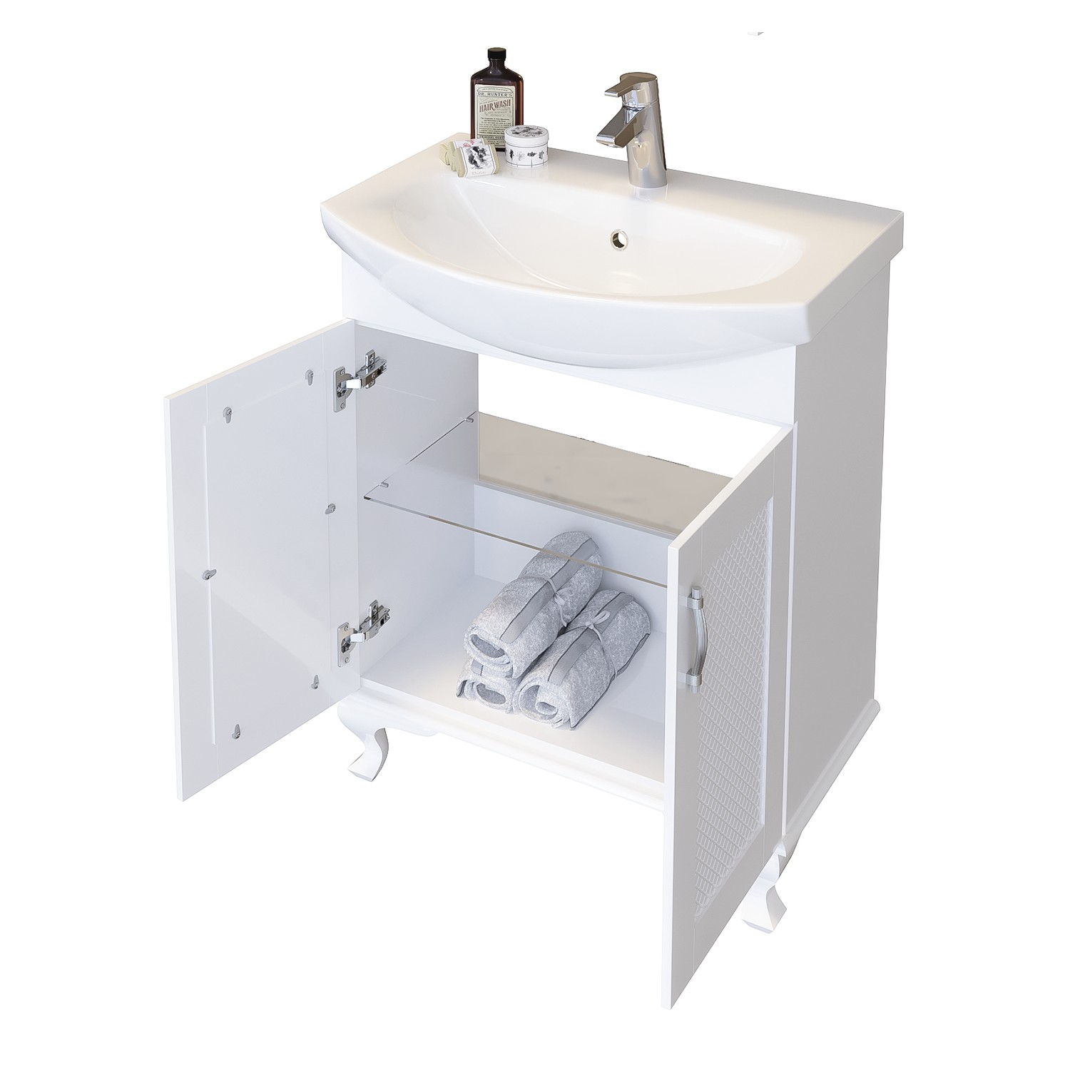Dulapurile sunt livrate asamblate și pregatite pentru instalare cu toate elementele de fixare necesare. Datorită dimensiunii și greutății chiuveta este ambalată separat.